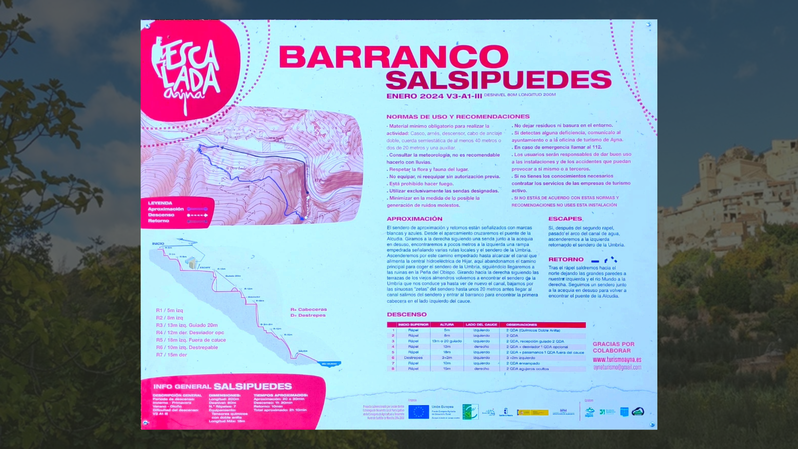 Se trata de un barranco equipado en 2024, seco todo el año excepto después de fuertes tormentas que podremos encontrarlo con agua. En cuanto a dificultad y duración estamos ante un descenso sencillo y corto, pero en el que encontraremos diferentes instalaciones para poder montar tanto rapeles normales, como cortos pasamanos, un rapel guiado y un desviador en otro rapel.