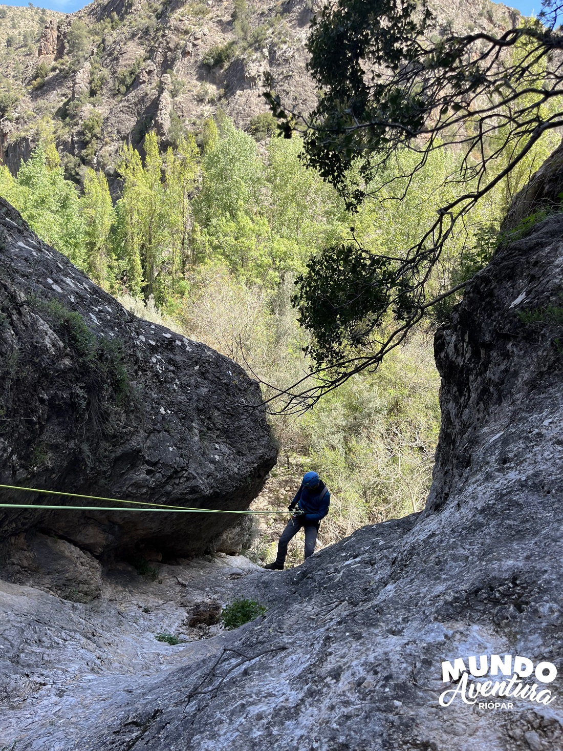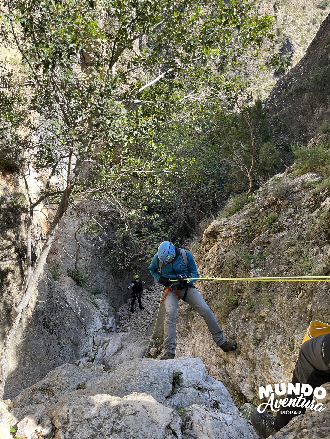 Para continuar tendremos los 3 mejores rapeles del barranco de 13,12,18 metros, el tercero el cual podremos hacer guiado, continuando con un cuarto rapel en el cual hay una instalación para montar un desviador y el un quinto rapel con muy buenas vistas.